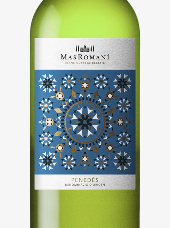 스페인 와이너리를 위한 이 라벨에는 스페인 국기와 디자인에서 영감을 얻은 문양이 매우 적절히 사용됐다.